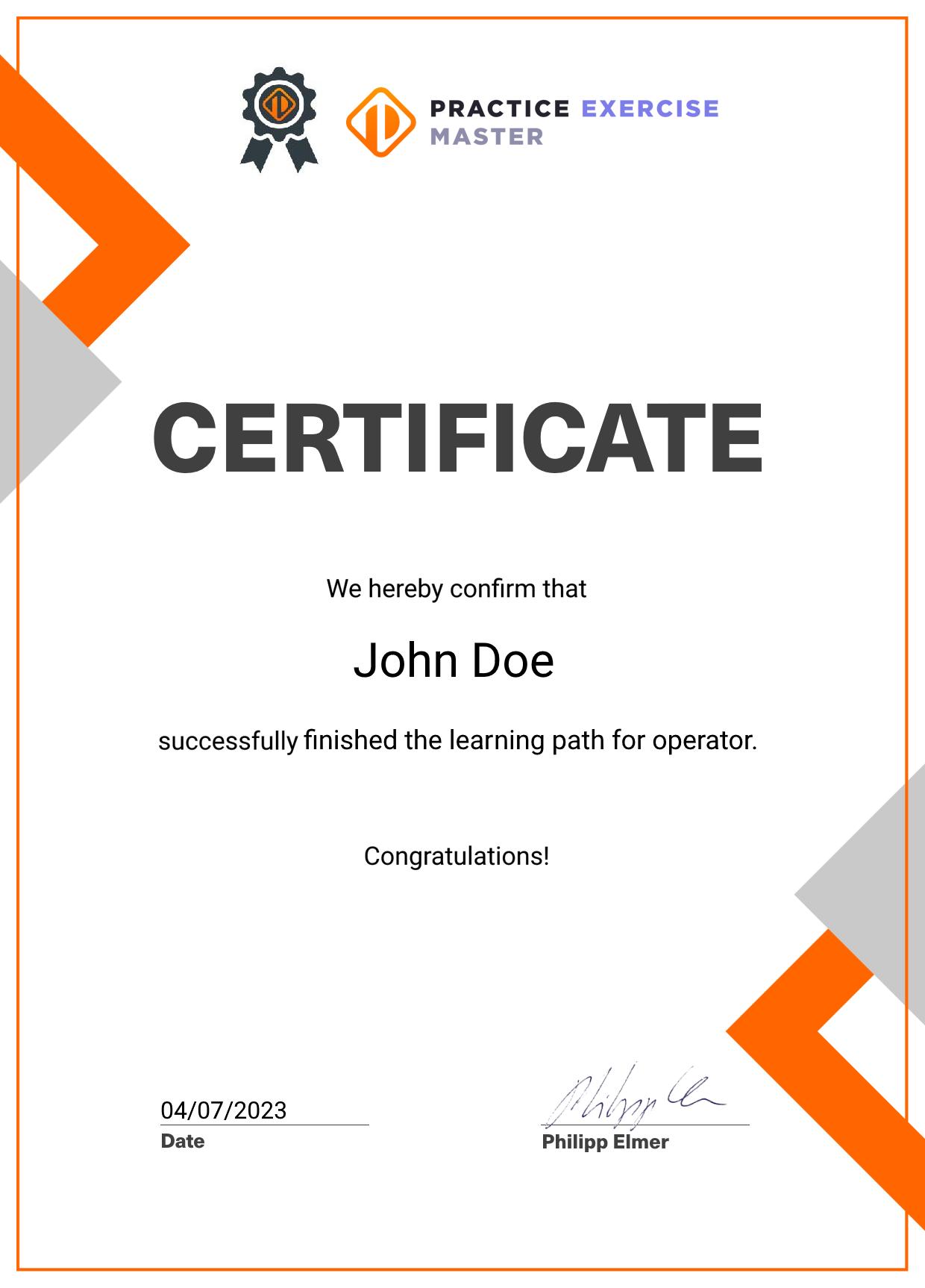 These prestigious certificates are granted after passing a comprehensive test at the end of a learning path. They certify your mastery of the entire learning path, which integrates multiple topics and skills.